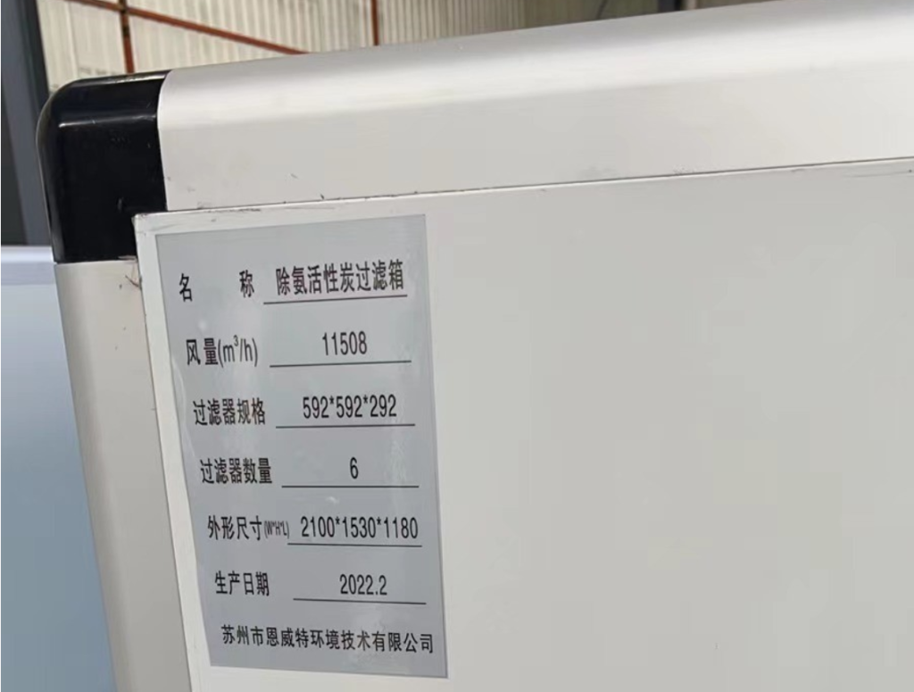 恩威特公司和专业的活性炭生产厂家配合,通过对活性炭改性,满足去除氨气的目的。