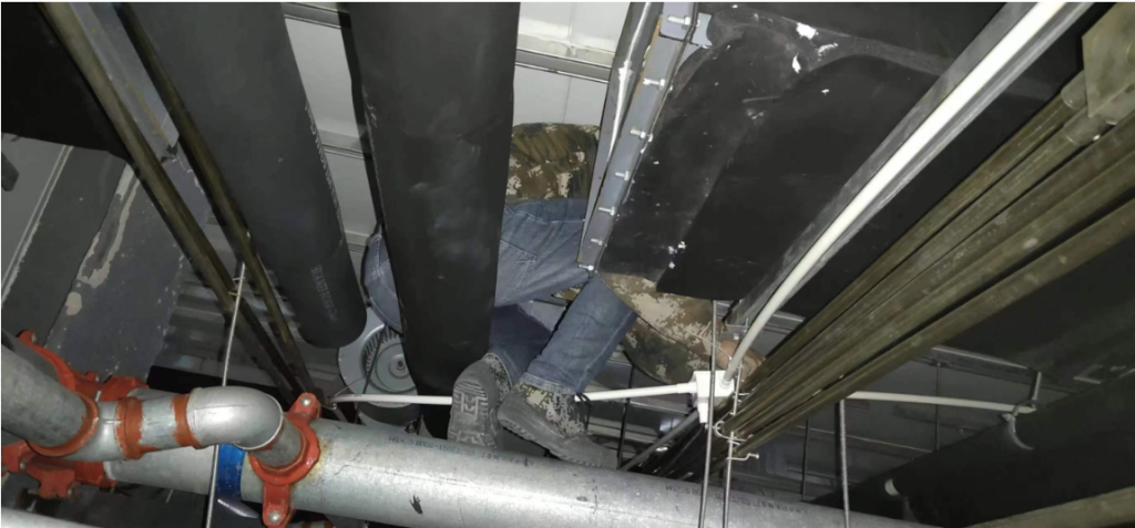 该项目为早期项目,且是老建筑改造的项目,吊顶内的空间比较小,给更换人员带来很大的困难。经过10多天的艰难施工,我公司的几位员工,克服困难,完成任务,并调试成功。