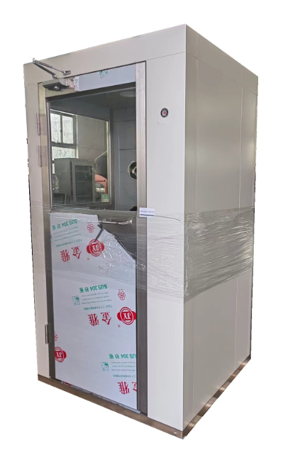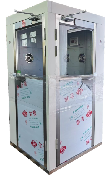 单人转角风淋室,可以满足洁净室狭窄空间内的布局设计,但由于转角风淋室内部空间小,安装红外感应的话,安装位置不好选择。一是安装位置只能贴近门板安装,使用时容易受到门板开启的影响。另外为保证人员进出时的方向判断和感应,需要在进出门均安装光电感应,增加了成本。