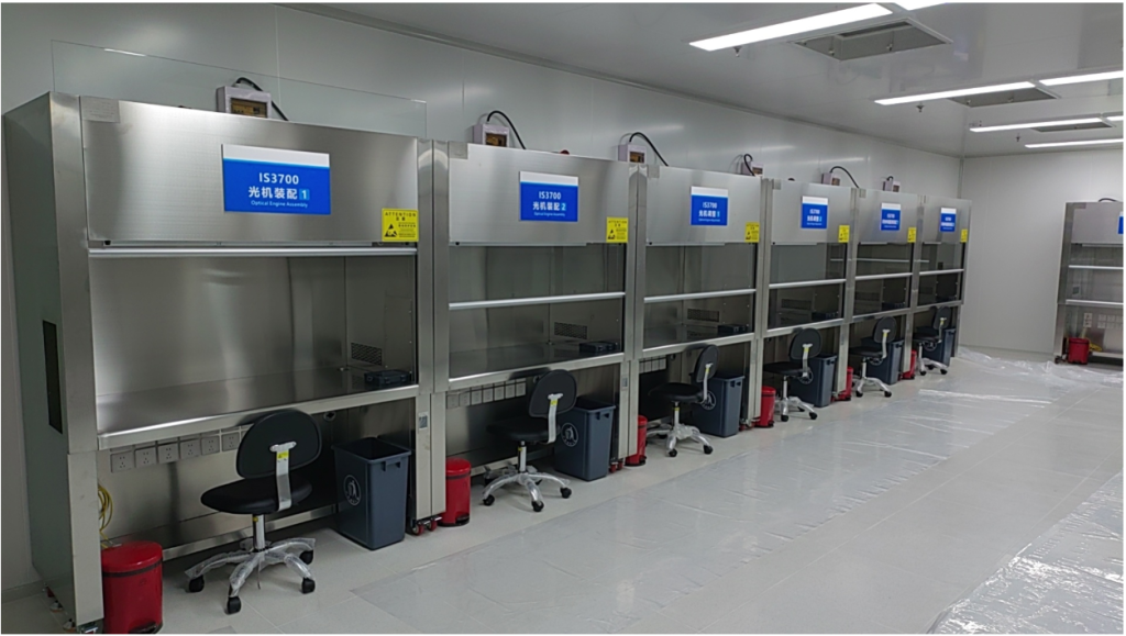全不锈钢洁净工作台,使用了 20 个插座和特气接口,两侧流水线进出口。