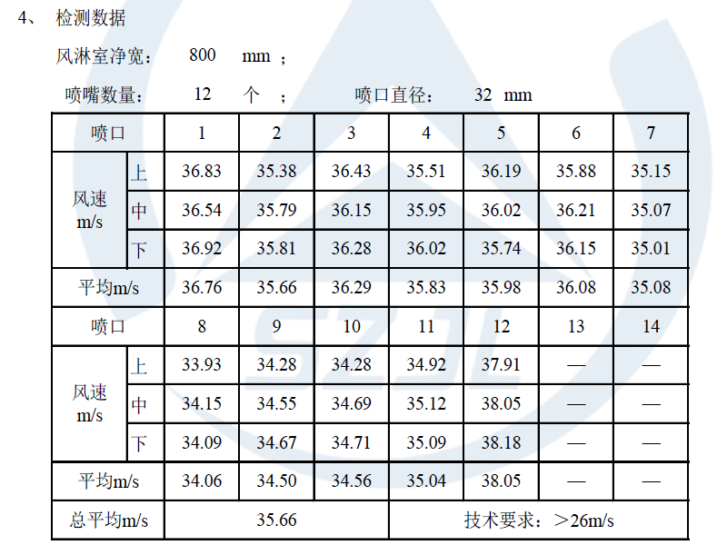 做了个风淋室的第三方检测,依据国家标准《JG/T 296-2010空气吹淋室》,共检测了风速、洁净度、噪音、照度 4 个技术参数。 从检测结果来看,均远远优于上述国家标准的技术要求,其中平均风速超过了 35 m/s。风淋室实际使用时,使用人员是无法能够直接感受到洁净度的好坏,很难感受到照度的高低,不容易感受到噪音的大小,但对风速的感觉就比较直接。35 m/s 的风速,确实有点高了,需要研究一下是否降低一些。 是用小尺寸的高效过滤器,还是用个小功率的风机?
